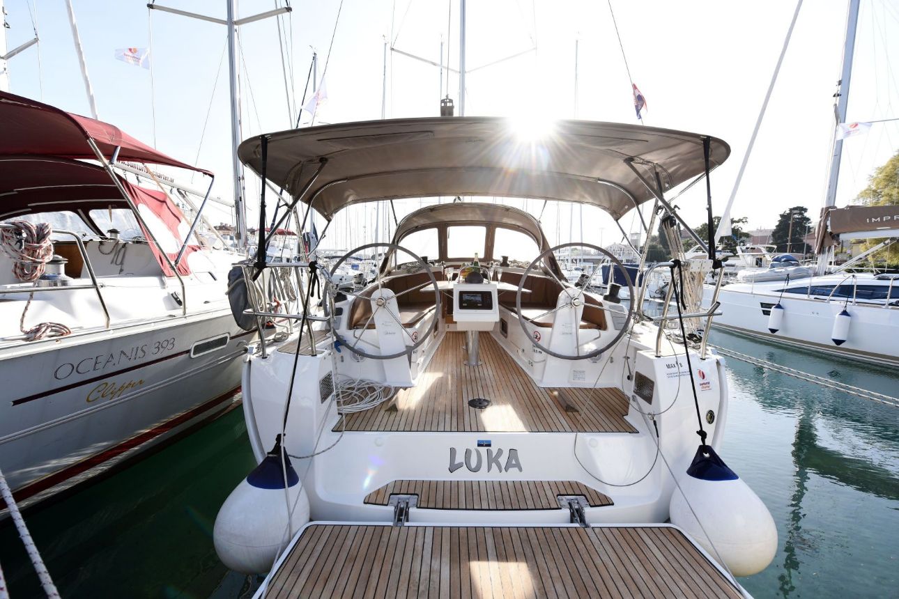 Platforma za kupanje, Bimini top, Stol u kokpitu, Vanjski/krmeni tuš, Gumenjak (Pomoćni čamac), Električno sidreno vitlo, Pasarela (mostić, skala), Glavno sidro, Sprayhood, Krmene ljestve